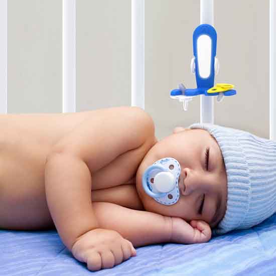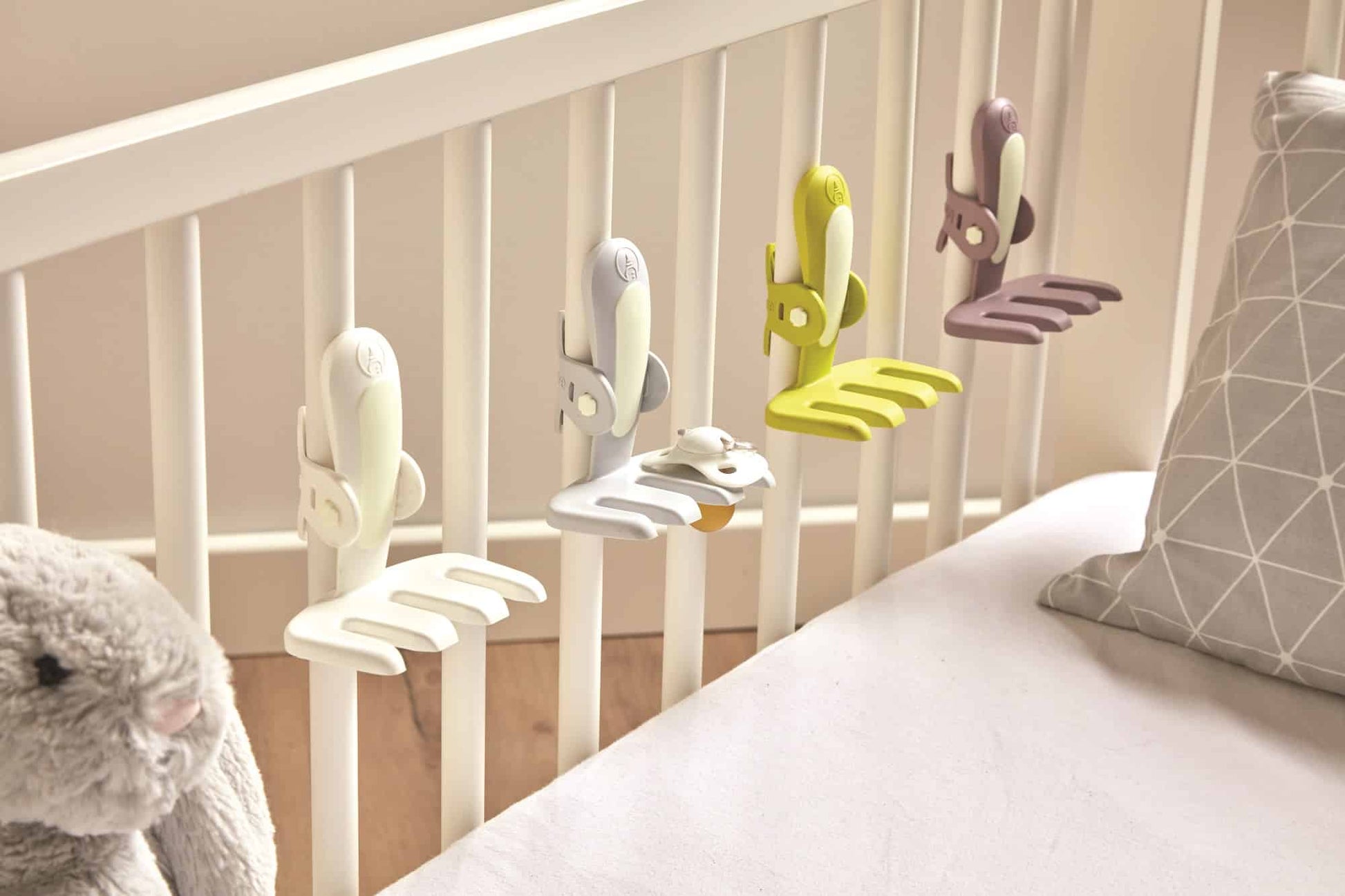 Le premier attache sucette universel qui se fixe aux barreaux du lit de bébé !