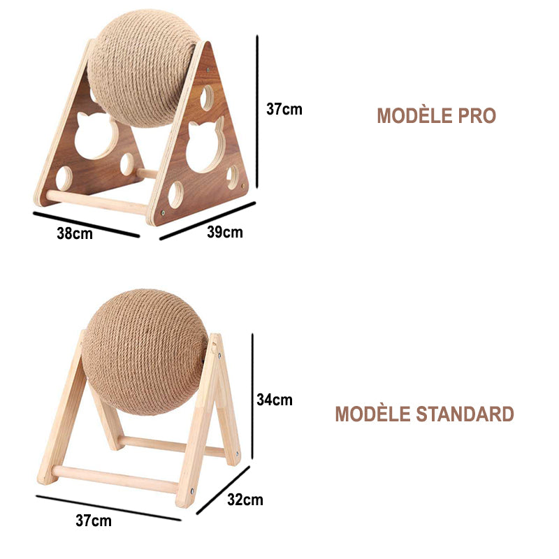 La Boule à Griffer Pour Chat™ est fabriquée à partir d'une corde en sisal tissé enroulée autour d'une sphère robuste et d'un support en bois de qualité. Cette boule offre à votre chaton ou à votre chat une grande surface pour faire ses griffes.